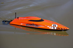 Display this racing boat on your mantle or enjoy it on the water with this functional RTR (Ready to Run) model. Delivered Ready to Run (RTR), the Swordfish can be operating within minutes of arrival, using the included 2.4Ghz radio transmitter, 2S battery, and battery charger. Only four AA batteries are required to begin racing!